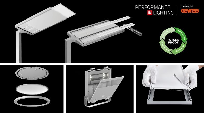FUTURE-PROOF Leuchten mit austauschbaren Komponenten: Seit 2017 entwickelt PERFORMANCE iN LIGHTING powered by GEWISS zukunftssichere Lichtlösungen, die Wirtsch ...