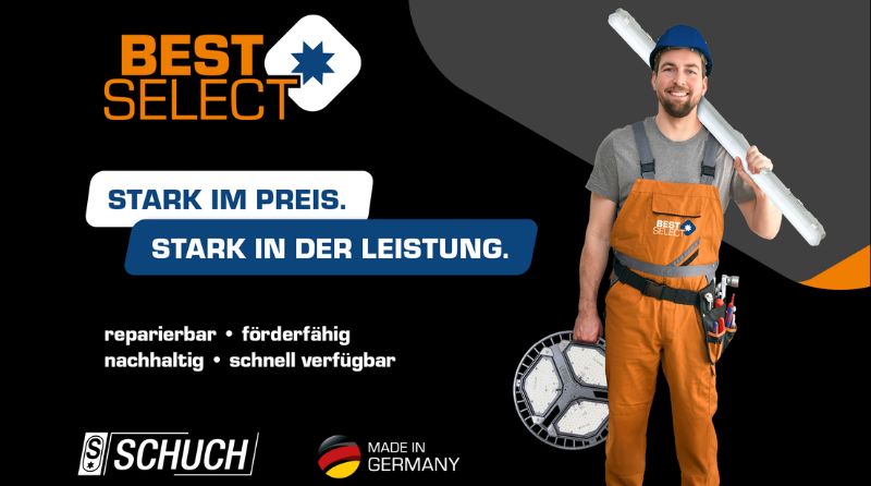 BestSelect ist eine Auswahl an bewährten Schuch-Leuchten für Ihren täglichen Bedarf. Sie überzeugen mit ihrem unschlagbaren Preis-Leistungs-Verhältnis, einer top Effizienz sowie sehr langer Lebensdauer und sind selbstverständlich schnell verfügbar. Damit bieten sie entscheidende Vorteile, wenn es um die Wirtschaftlichkeit und Nachhaltigkeit von Investitionen geht.