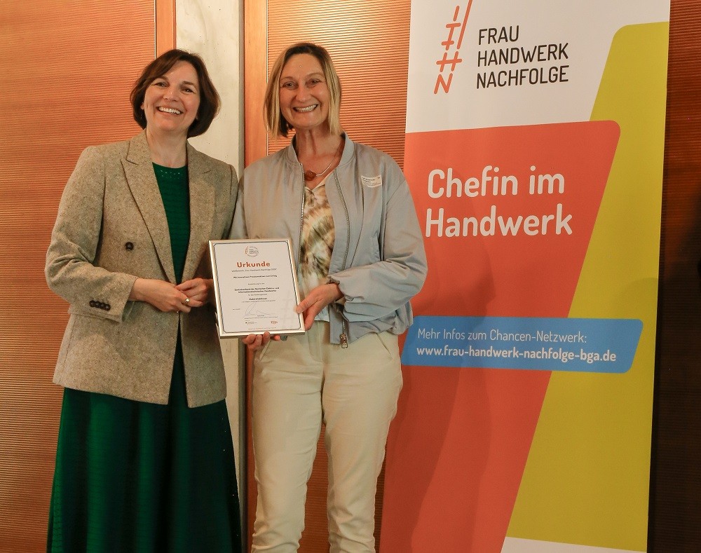 Die Auszeichnung wurde am 21. April beim „Praxisforum Handwerk“ in Berlin durch Mareike Wulf, Parlamentarische Staatssekretärin im BMBFSFJ, an Gabi Schermuly-Wunderlich übergeben. Die Geschäftsführerin der ArGe Medien im ZVEH war stellvertretend für die Initiatorinnen angereist und nahm auch an der anschließenden Diskussionsrunde teil. Hier diskutierten Katja Lilu Melder, Bundesvorsitzende der UnternehmerFrauen im Handwerk (UFH), Silke Harnapp, Mitglied des Kuratoriums „Frauen-Handwerk-Nachfolge“, Anette Morhard, Vertreterin der bundesweiten gründerinnenagentur (bga), Katharina Nopper, Handwerkskammer Reutlingen, Unternehmensberaterin Katharina Apfel und Gabi Schermuly-Wunderlich als Vertreterin des Zentralverbandes der Deutschen Elektro- und Informationstechnischen Handwerke (ZVEH), wie sich Frauen noch besser fürs Handwerk gewinnen und Hemmschwellen abbauen lassen.