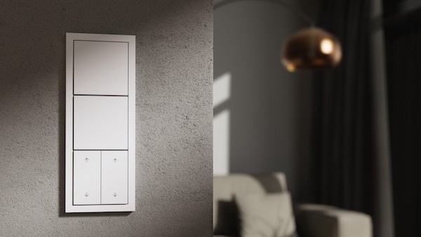 Gira F100 in Reinweiß seidenmatt (lackiert) mit System 3000 Touchaufsatz zur Steuerung von Licht oder Jalousien