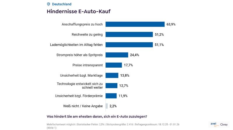 ZVEI-Umfrage zu E-Autos: Fehlende Lademöglichkeiten im Alltag bremsen Kaufentscheidung​